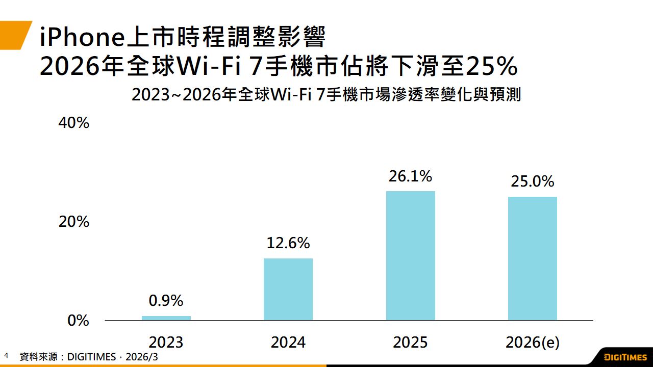 2026年Wi-Fi 7手机受限成本与苹果调整上市时程 市占率将下滑至25%