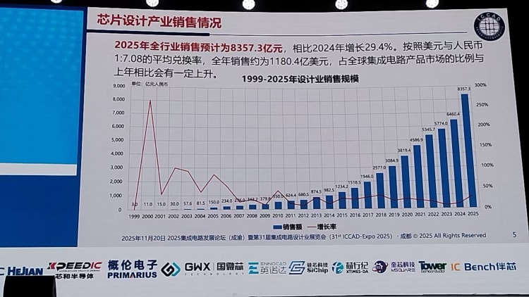 中国IC设计如野火燎原 魏少军:2025销售破千亿美元、年增率近3成