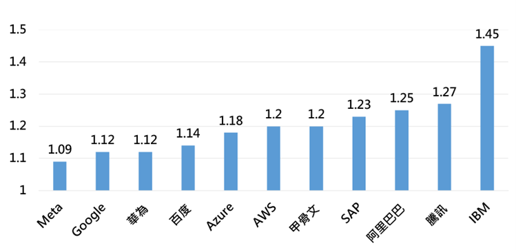 观察主要數據中心业者的PUE,可发现美系大型數據中心业者数值较小,平均为1.12;而大型數據中心业者Meta的Prineville數據中心因使用液冷技术于數據中心建置散热设计,成功实现将PUE值降至1.09~1.06。