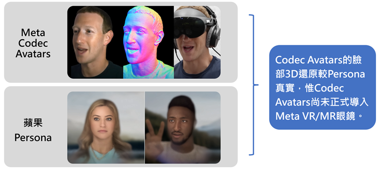与此同时,Meta也正致力于Codec Avatars技术,还原人脸动态至元宇宙,虽目前尚未正式商用,但据2023年MetaCEOMark Zuckerberg的live demo画面,Meta的Codec Avatars效果更胜苹果的Persona。