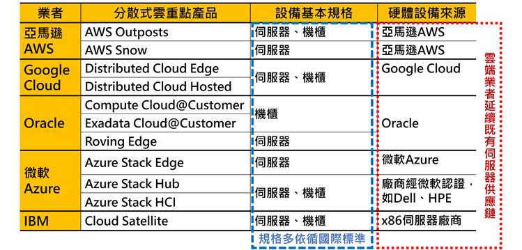 云端业者提供分散式云产品组合有助满足定制化需求,并可因应全球各国數據法规要求提供在无须聯網仍可使用的专属服务,如Google Distributed Cloud Hosted支持在断网环境下仍可提供Google云端服务。
