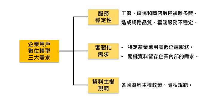 企业采用云端服务实现數字转型愿景,但企业应用所需的網絡品质、定制化需求和數據法规等因素,使企业用户在數字转型时面临三大挑战。
