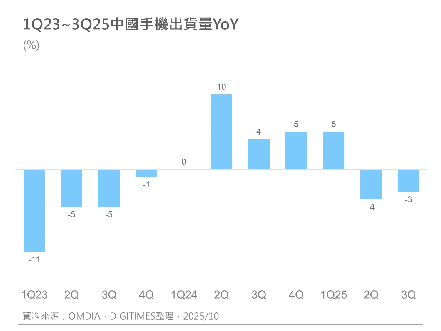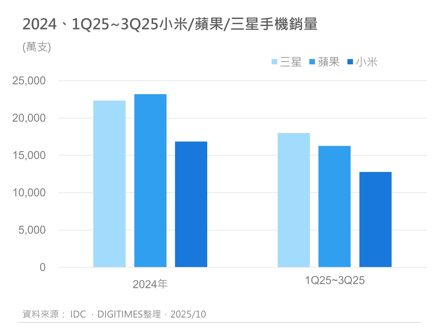 产销调查:3Q25中国市场智能手机出货6,660万支 预估4Q25季增15.4%