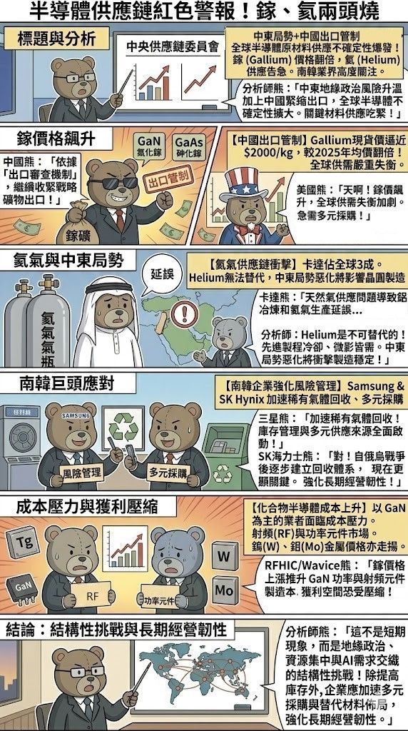中东战火升温,冲击沿着LNG、航运与石化链外溢至半导体供应链,从光阻剂、氦气等关键材料,到晶圆厂用电、生产及运输成本,整体供应稳定性正面临新一波压力测试。