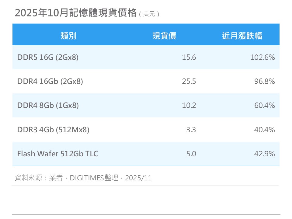 存储器缺货一路加剧,云端服务(CSP)大厂持续扩大资本支出投入,AI排挤效应日趋严重,供应链业者透露,三星电子(Samsung Electronics)率先带头,10月DDR5 DRAM暂停合约报价,引发其他原厂相继跟进,这将导致供应链面临「断粮」,预计将延后至11月中旬,才有望恢复报价。近期DRAM市场现货价暴涨,尤其DDR5价格已较上月底呈现「倍数跳增」,业界大叹,采购成本将呈火箭飙升。