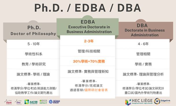 1、稀缺/权威象徵:全球仅1%商学院拥有三重国际认证,博士学位代表学术与实务的最高成就。2、从实务到思想领导:以研究方法提炼经营智能,系统化转化产业洞见,塑造具影响力的领袖。3、超越学历竞赛:当硕士满街跑,博士头衔让您在董事会、国际论坛拥有无可取代的发言权与公信力。4、为企业建立知识资本: 将个人经验转化为可传承的研究成果与管理架构,奠定企业永续发展与接班基础。