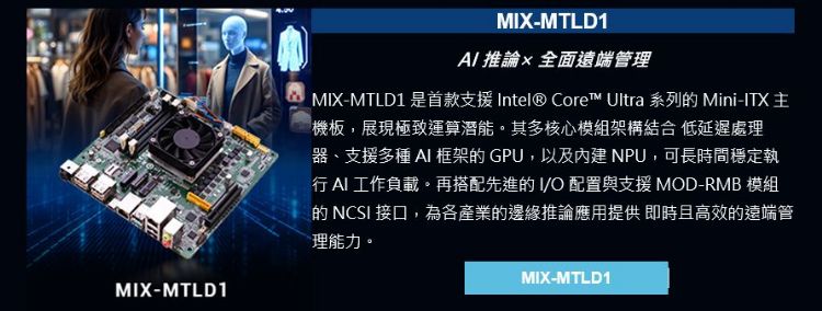 研扬科技MIX-MTLD1把Intel Core Ultra快速导入Edge AI使用