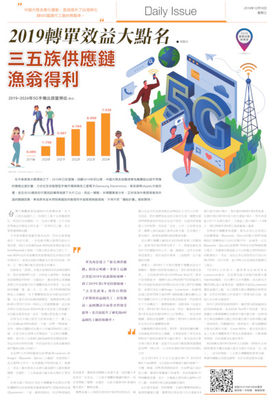 在中美贸易大战烟硝之下,2019年已近尾声。回顾2019年初以降,中国大陆系统龙头华为集团抛出超乎想像的积极出货计划,力求在全球智能手机市场与韩系三星电子(Samsung Electronics)、美系苹果(Apple)分庭抗礼,并且在5G通信时代电信设备领域抢...