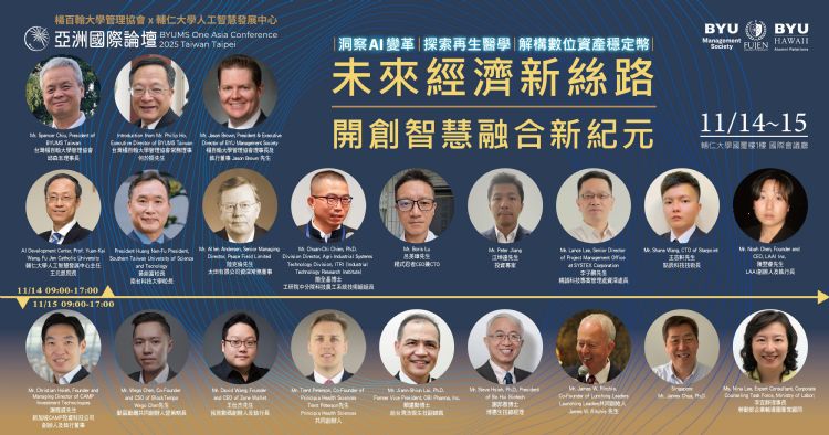 BYUMS亚洲国际论坛曾在蒙古、新加坡等地举行,而2025年移师台湾,以「未来经济新丝路」为题,与辅仁大学人工智能发展中心联合主办为期两天的国际论坛,探讨AIoT、智能转型、再生医学、数码资产等前瞻性主题分享。