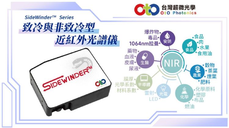 台湾超微光学(OtO Photonics,以下简称 OtO)研发的迷你近红外光谱模块—RedBullet(RB)系列、GoldBullet(GB)系列与 SideWinder(SW)系列—涵盖 900–1700 nm、900–2200 nm、900–2500 nm 等波长范围,在水果熟度判定、原料品质控管与加工过程监测等多项应用中展现强大市场成长动能。其高灵敏度与低杂讯设计,加上支持模块化整合与完整SDK,使OtO产品持续受到当地外研究单位与设备制造商采用。