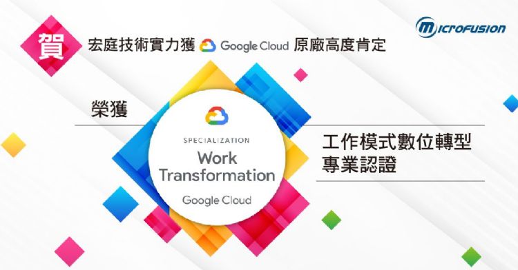 宏庭科技 Microfusion 协助当地外二千多家企业透过 Google Workspace 实现工作模式数码转型、解决业务难题,更在 Google Cloud 合作夥伴专业认证计划中荣获「Google Cloud Work Transformation Specialization(工作模式数码转型)」 专业认证,展现宏庭「专业的云端技术力」与能为客户提供专属的数码转型方案实力。