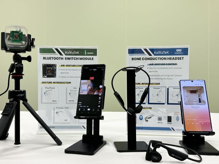 开酷科技于智能电子新创梦想实践馆与IisC智能物联网主题馆现场,展出与客户和合作夥伴之终端产品与原型样品,展品领域涵盖个人消费性电子产品与适于AIoT装置的手势控制解决方案,包括结合悬浮手势识别技术的骨传导运动耳机、头戴式耳机,以及K60168模块在AIoT装置上的应用展示,吸引现场众多观展者亲身体验手势操作的便利,尤其个人消费性电子、智能家电与AR应用相关的业者,更展现对K60168方案的高度兴趣,并同时进行讨论。